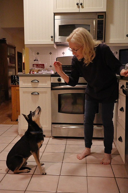 We give him pumpkin or sweet potato, a dab of broccoli, and we heat chicken broth and mix in with plain yogurt. Always trying to make it nice. He gets glucosamine, pain meds for arthritis, and "brain" amino acids as he is showing a little dementia. He still jumps up and down to go out, straight up in the air. This was last night.