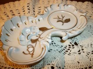 Need a few extra brain cells. I've had this old pin dish forever and keep running into it from time to time. Just can't seem to find an ID. Maybe it's not as old as I think. Can you please take a look and tell me what you think. Thanks so much...I rearely list on the weekend, but kindof a snow weekend for us...just cozy and warm...